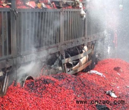 衡陽(yáng)一裝載新疆大棗的貨車(chē)撞上高壓線起火
